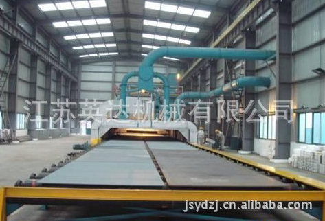 鋼板預處理線工藝是指鋼材在加工前(即原材料狀態(tài))進行表面拋丸除銹并涂上一層保護底漆的加工工藝。鋼材經過預處理可以提高機械產品和金屬構件的抗腐蝕能力,提高鋼板的抗疲勞性能,延長其使用壽命;同時還可以優(yōu)化鋼材表面工藝制作狀態(tài),有利于數控切割機下料和精密落料。此外,由于鋼材在加工前其形狀比較規(guī)則,有利于機械除銹和自動化噴漆,因此采用鋼材預處理可大大提高清理工作的效率,減輕清理工作的勞動強度和對環(huán)境的污染。正因為如此,鋼板預處理工藝不僅在工藝發(fā)達國家已推廣應用,而且在國內引起眾多行業(yè)的日益重視,不少企業(yè)已把鋼材預處工藝提到企業(yè)技術改造的議事日程。