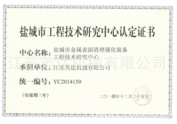 公司率先通過ISO9001:2008質(zhì)量管理體系認(rèn)證、ISO14001:2004環(huán)境管理體系認(rèn)證。擁有一支專業(yè)的技術(shù)團(tuán)隊(duì),先后取得了網(wǎng)帶通過式拋丸機(jī)、新型機(jī)械回收噴砂房、輥道通過式重鋼拋丸機(jī)等三十項(xiàng)產(chǎn)品專利。(注:各項(xiàng)產(chǎn)品專利及所有證書詳見企業(yè)官網(wǎng):http://www.radio-musica.net/或阿里誠(chéng)信檔案)